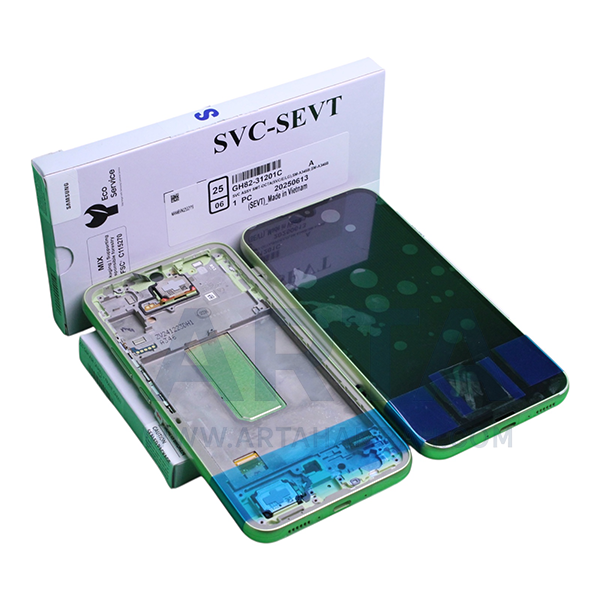 این قطعه نمایشگر رسمی Galaxy A34 5G است و با فریم سبز برای نصب آسان و کیفیت اصلی ارائه میشود.