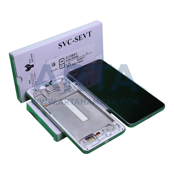 این نمایشگر اورجینال Galaxy A73 5G مدل A736 است که همراه فریم سفید رسمی عرضه میشود.